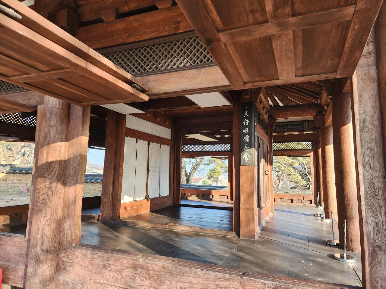 날이 시원하고 햇빛이 환하게 쪼이는 정이월 열하루 이른 겨울날 아침에 무진정을 방문했다. 무진정 서편 아래로 괴산재가 한 담장 안에 같이 있는데 들어서는 문이 훤히 열려 손님을 맞고 있다.