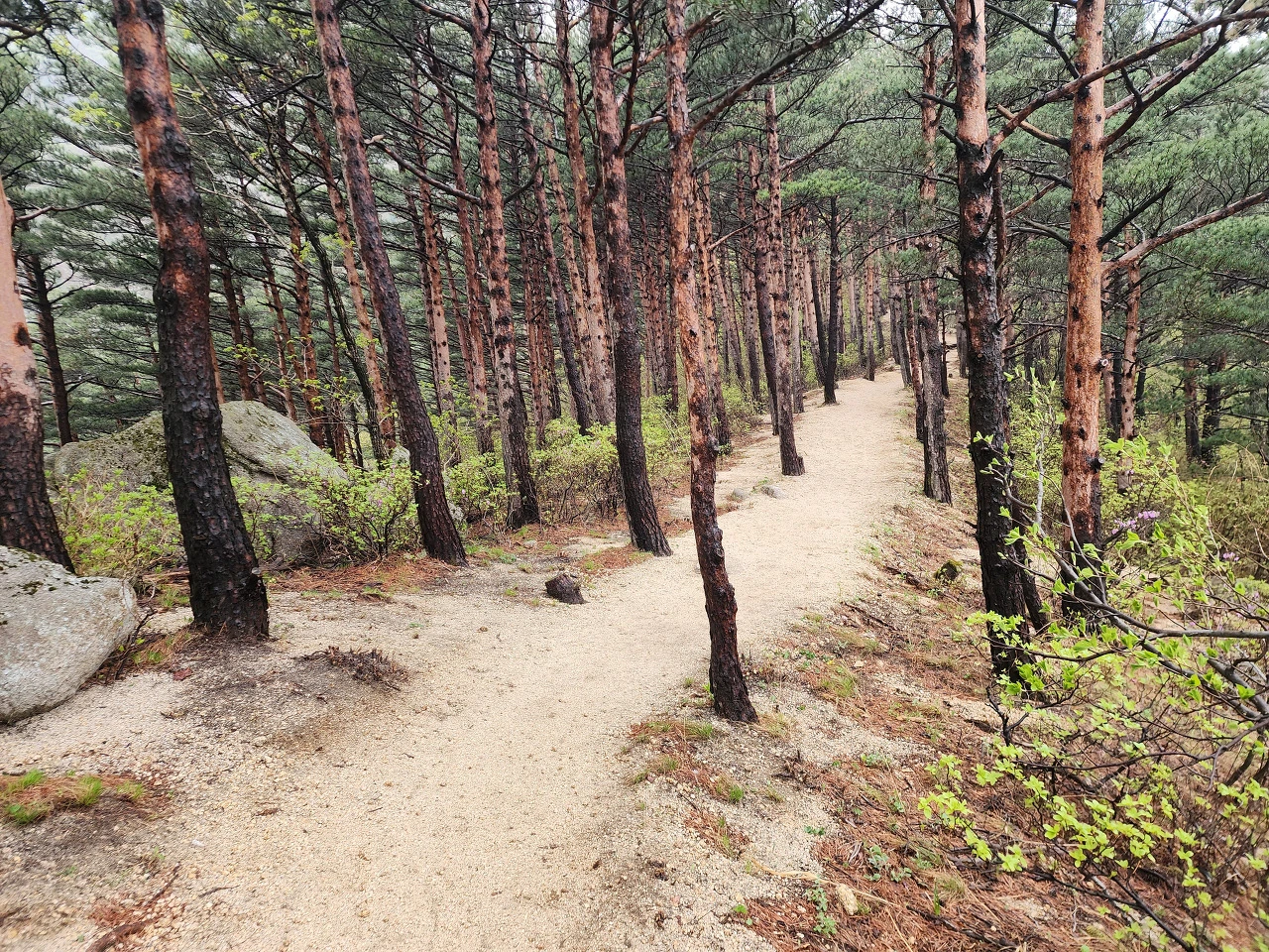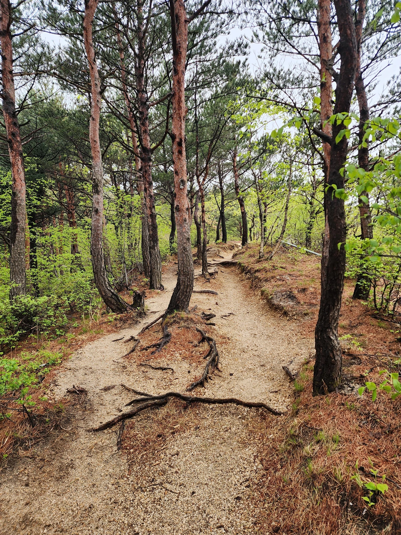 내려오는 길이 뿌듯하다. 두 번 오른 보람으로 꽉 찼다. 마음에 여유가 생겼는지 올라올 때 못 봤던 아름다운 숲과 길이 보인다. "내려올 때 보았네, 올라갈 때 못 본 그 꽃" 고은 시인의 <그 꽃> 시가 이래서 많은 이들의 공감을 불러일으키나 보다.