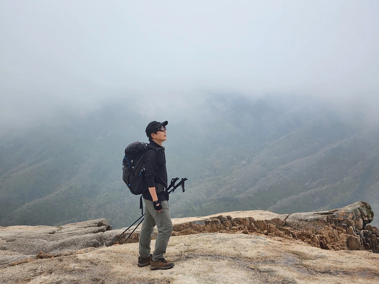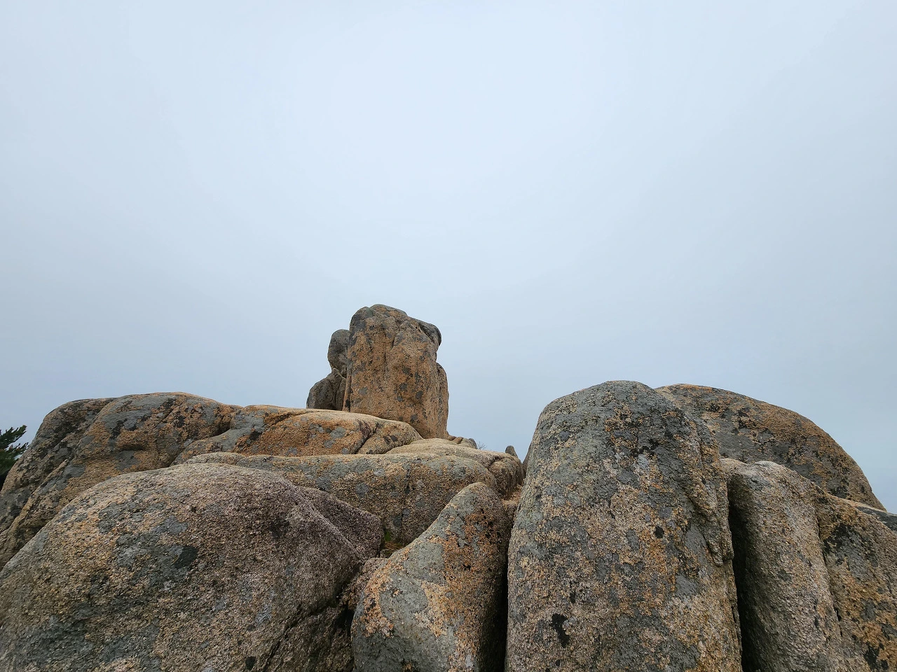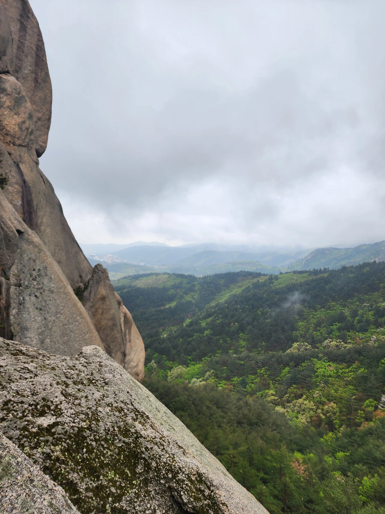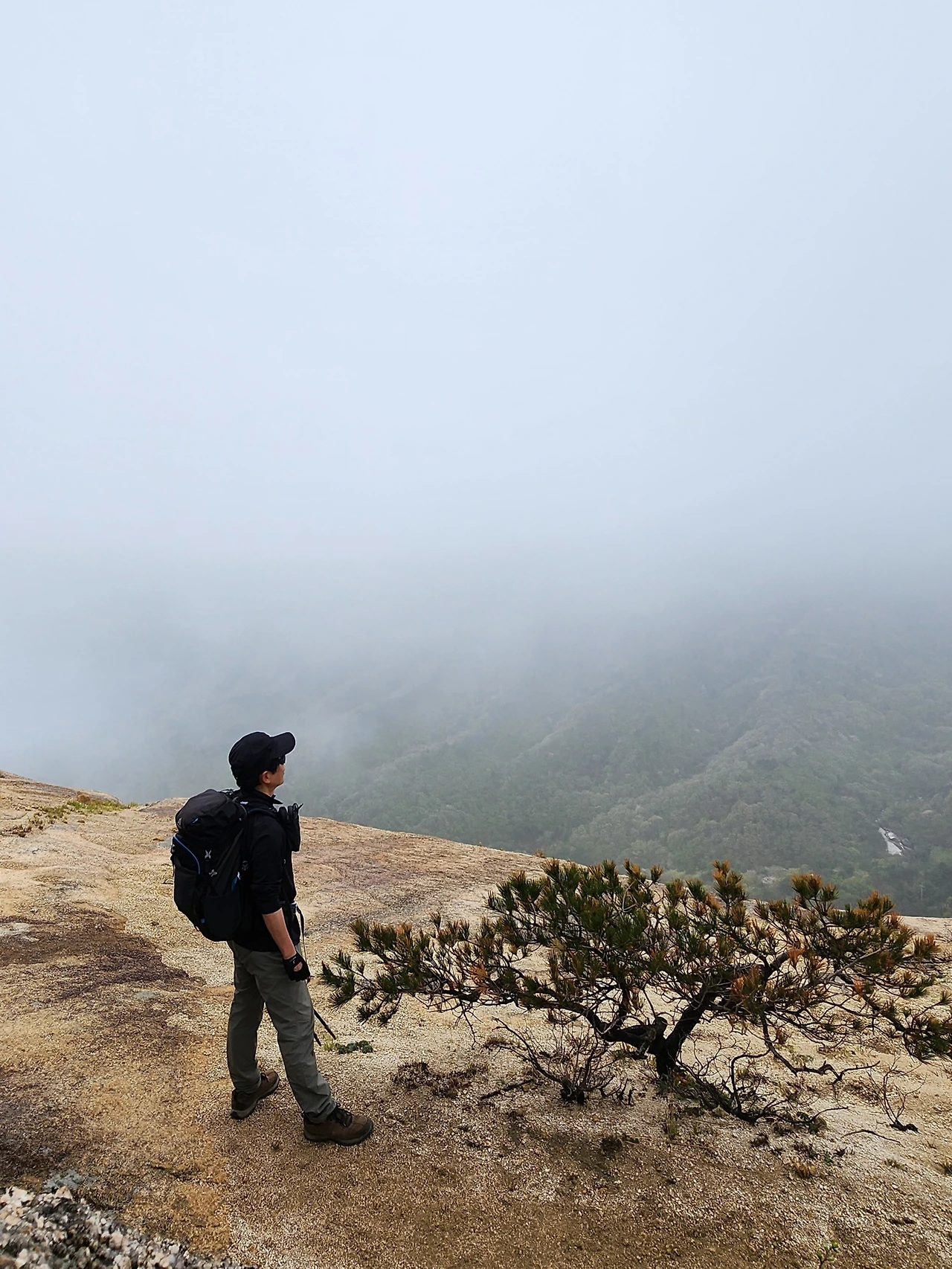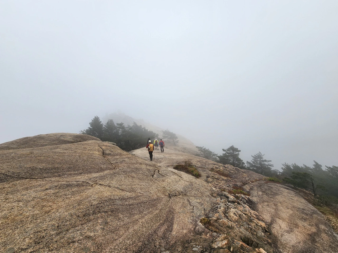 신선대로 다시 오른다. 사람들이 모두 내려오기만 하는데 절경을 너무 보고 싶은 마음에 일말의 기대를 품고 거꾸로 올라간다. 정상이 얼마 안 남았는데 방금 전 내려올 때도 주변이 걷히며 바다도 어렴풋이 보였는데 다시 구름이 잔뜩 낀다. 처음 올라왔을 때보다 더 짙다.