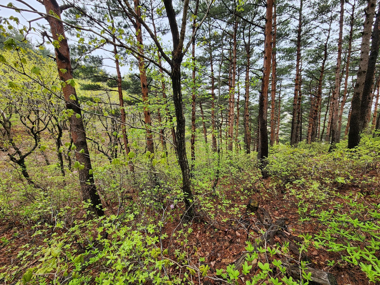포기하고 내려오는 길. 희미하게 동해와 해안선이 보인다.