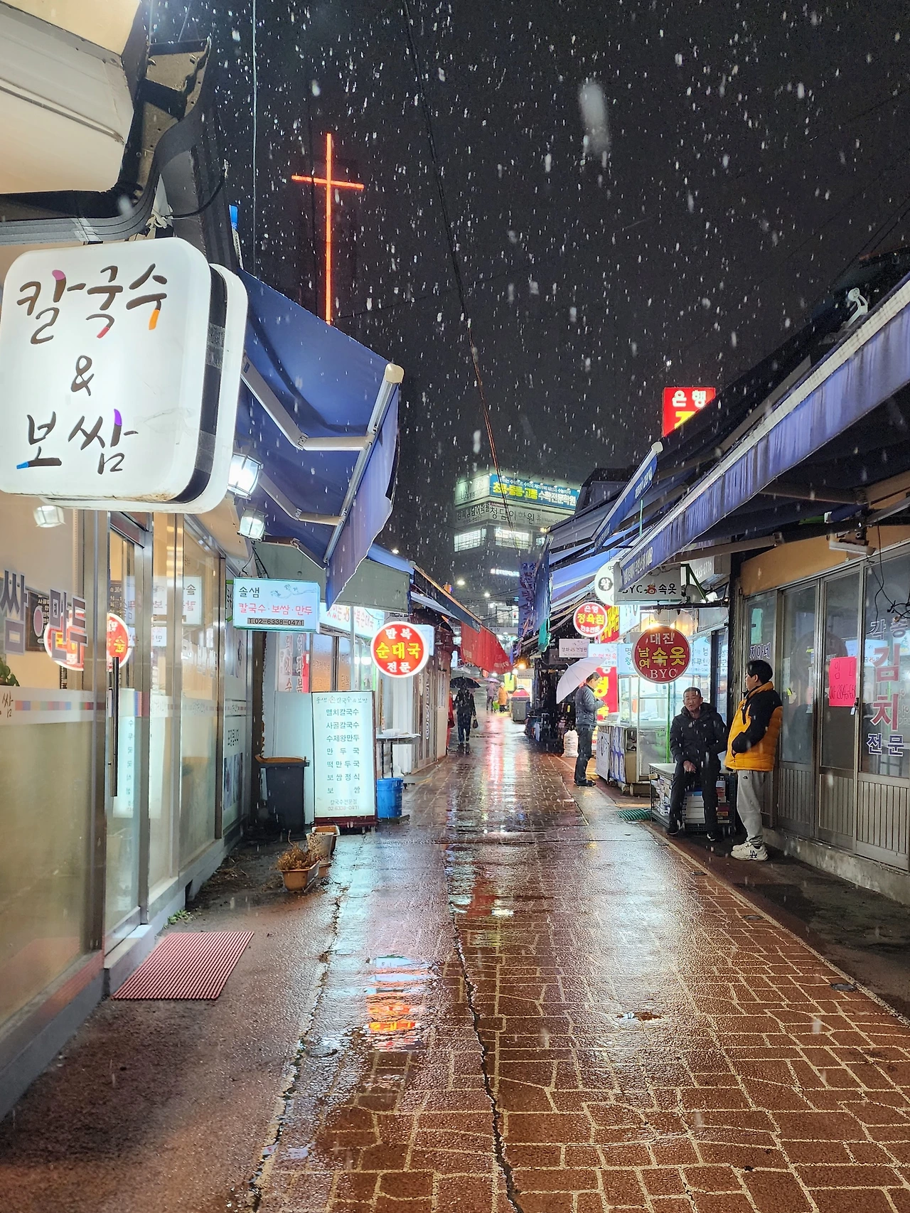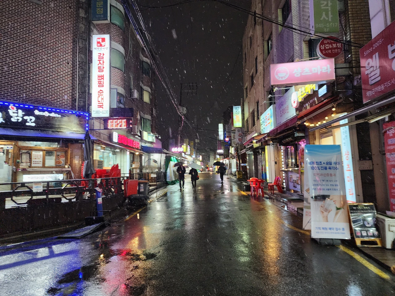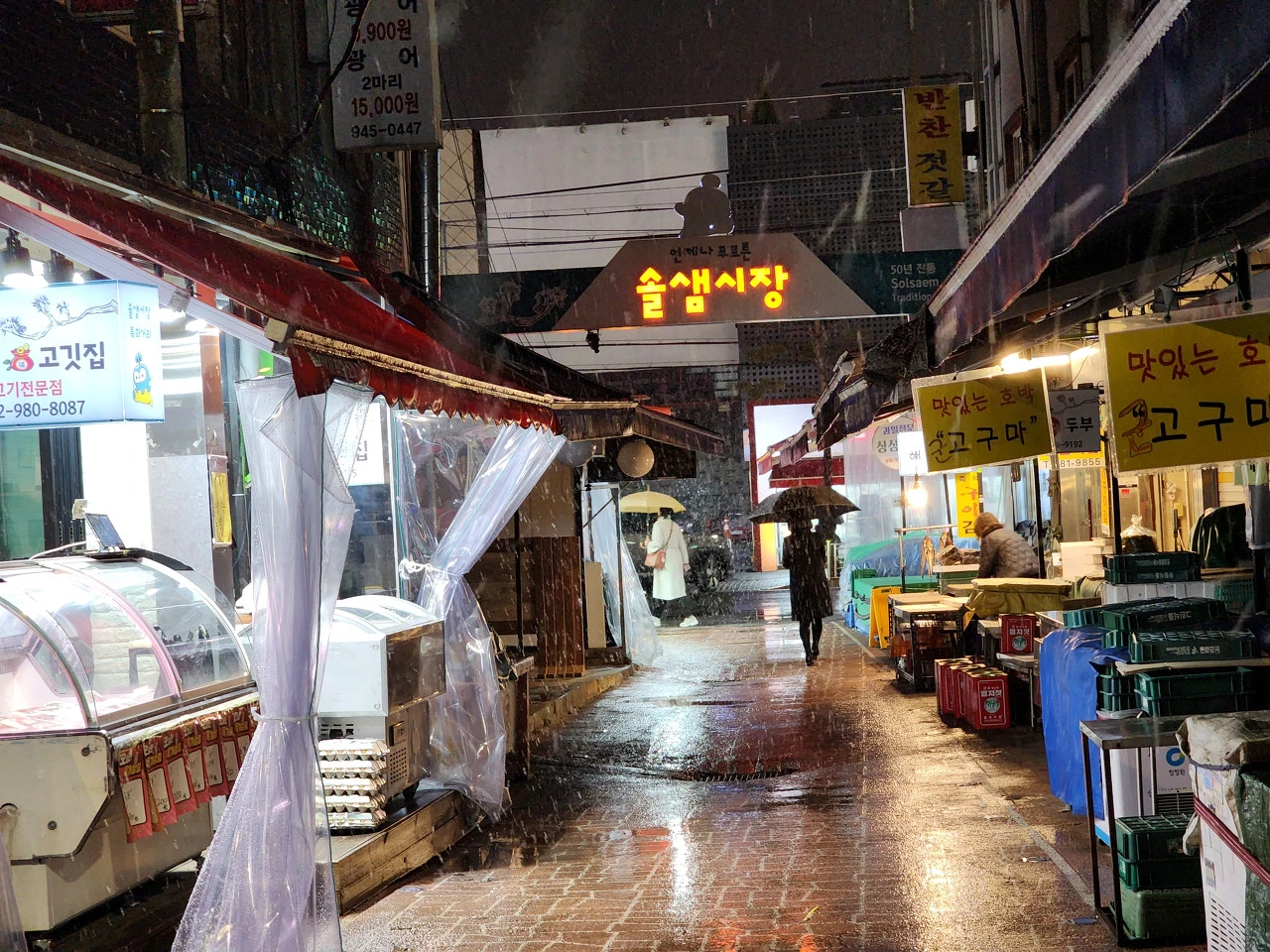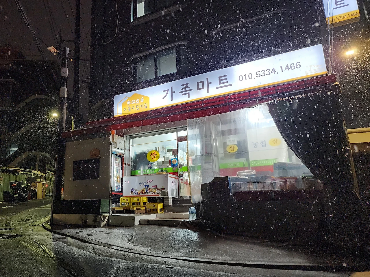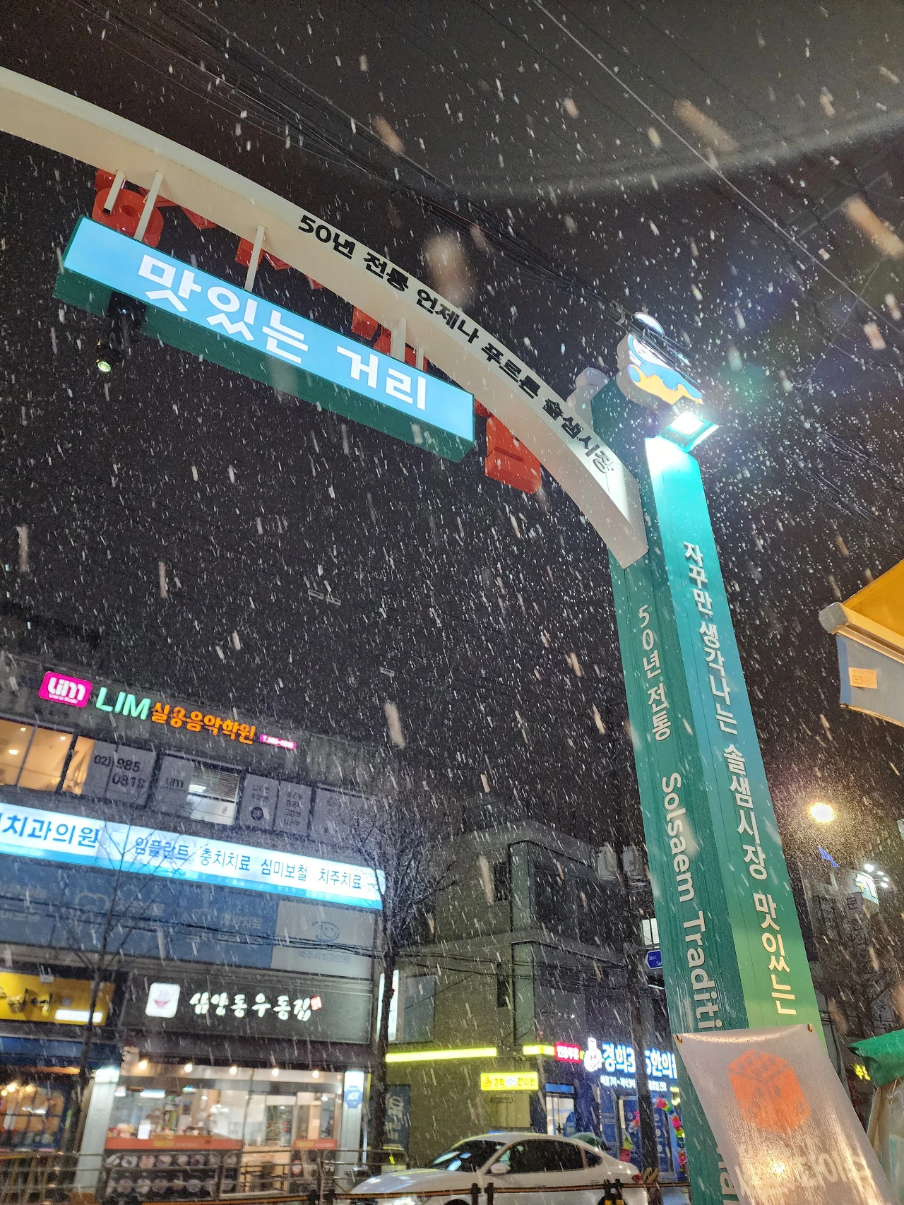 삼양동사거리 길가 언저리에 솔샘시장 골목만 간신히 남아 이곳이 삼각산동이었음을 증언하고 있다. 사방으로 통하던 길을 끊고 나서 간판을 붙이고 맛있는 거리로 소개하는 것은 자생 기능을 죽이고 나서 인공호흡기를 붙인 것과 같다. 눈발만 날리는 좁다란 옛 골목에 생과 사투를 벌이는 듯 버티고 선 가게들이 불을 밝히고 영업 중인 모습이 애잔하면서도 삶의 따스함을 전하는 마지막 골목길 풍경이되고 있다.