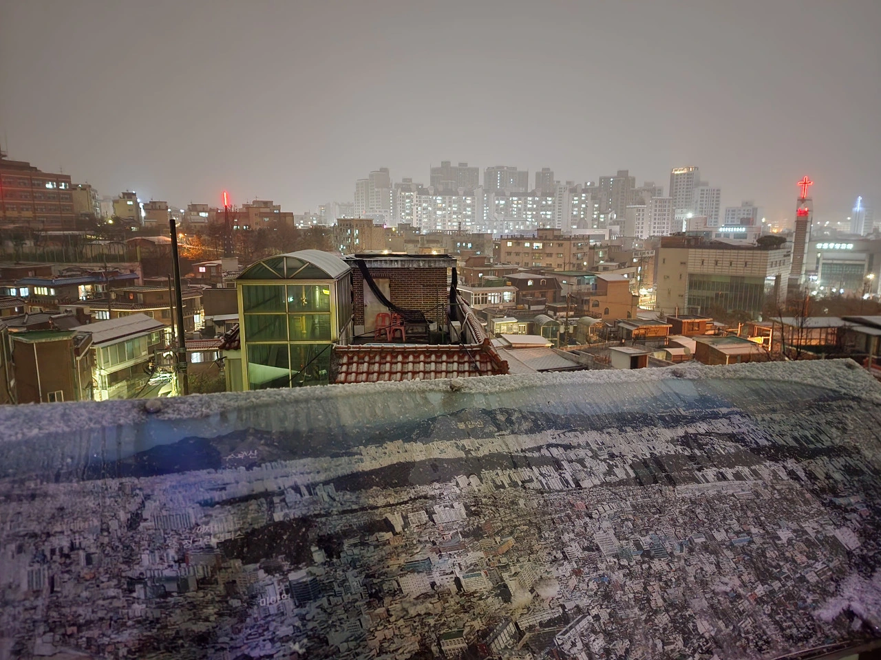 삼양동의 조망 쉼터 공원들과 조망 풍경. 마을과 수락산, 불암산이 한 눈에 내다 보인다.(오늘은 눈오는 날이라 안보인다.)