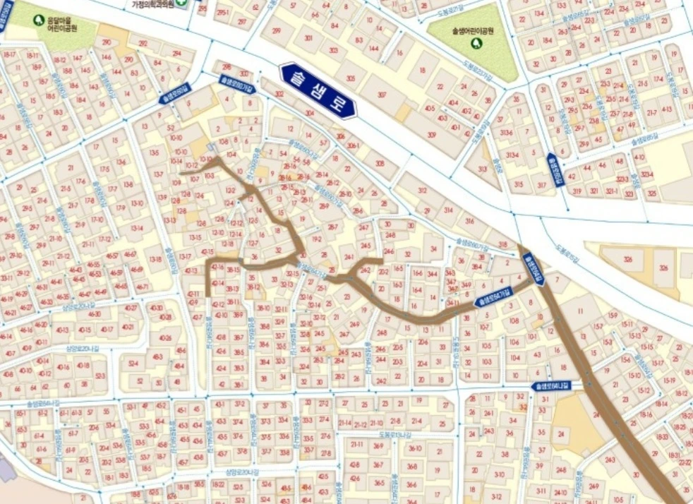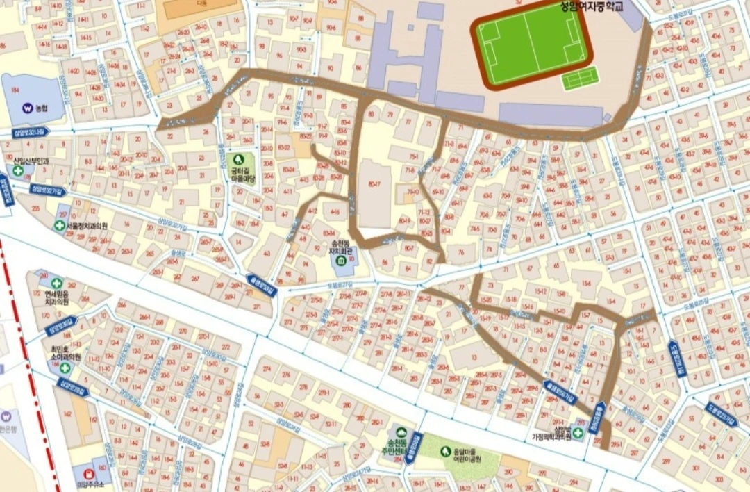 삼각산동은 솔샘시장 골목길 주변부만 남았다.