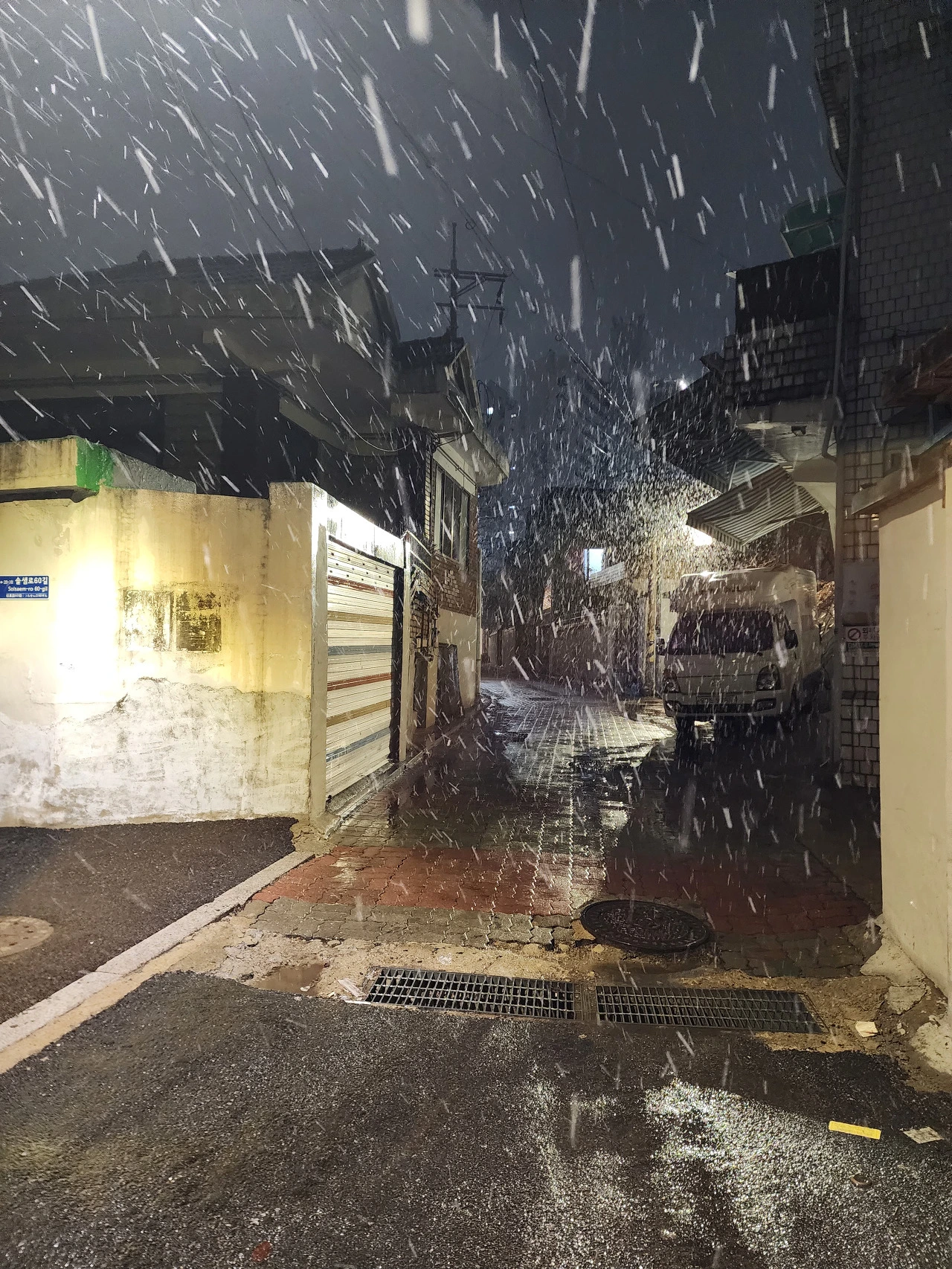 그젠 미아동(법정동 미아동은 관할 행정동인 삼각산동, 송중동, 송천동, 미아동, 삼양동을 이른다) 골목길을 걸었다. 마침 눈이 펑펑 오고 있어 휘날리는 눈발이 마치 살아서 춤추는 듯한 향연을 골목마다 가로등 불빛마다다양하게 펼쳐 보인다. 그 눈발 날리는 불빛 따라 잊혀진 골목길을 걷는다.