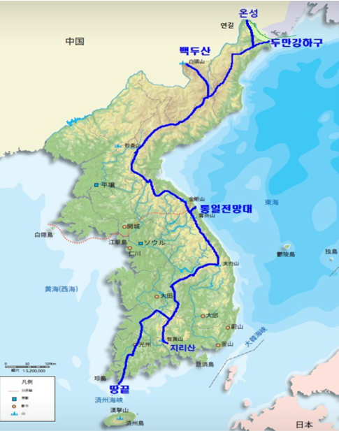 한국인은 지금 아스팔트나 회색 도시 위가 아닌 우리 국토 위에 서 있다.