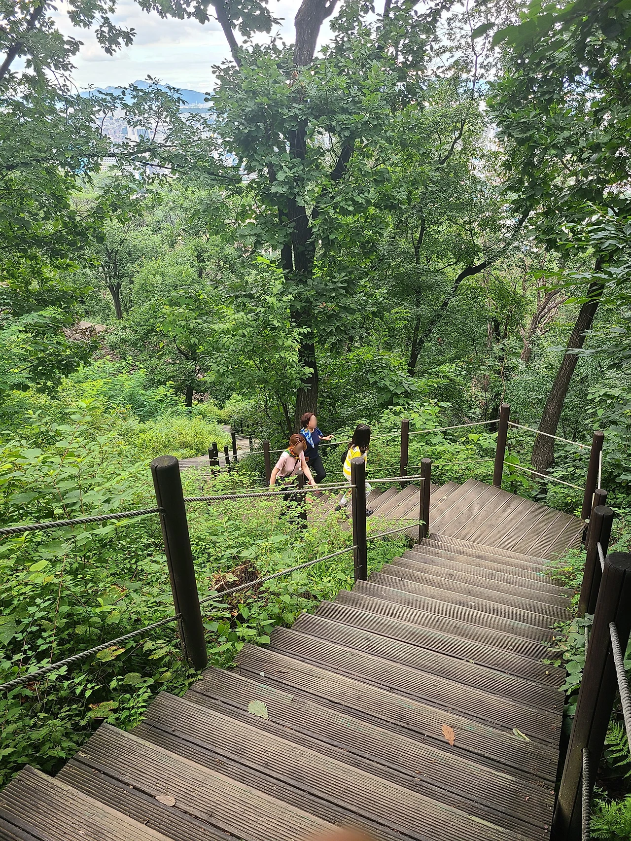 3. 남산 둘레길 :남산순환로 동쪽 성벽 목재계단길에서 조금 더 가면 나오는 데크 쉼터에 숲으로 향하는 길이 연결돼 있다. 남산 남쪽은 거의 숲 속 원시 자연을 느끼는 멋진 길이 펼쳐진다. 북쪽으론 산책길로 너무도 유명한 북측 순환로를 걸어 남산을 한 바퀴 도는 길이다.