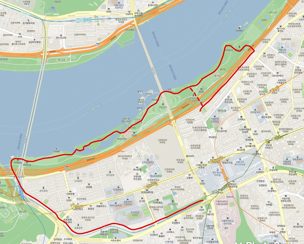 ◇경유지 : 심산기념관-이수교-동작역-한강 갈대밭-서래섬-반포 한강공원-반포 올레길-고속터미널역