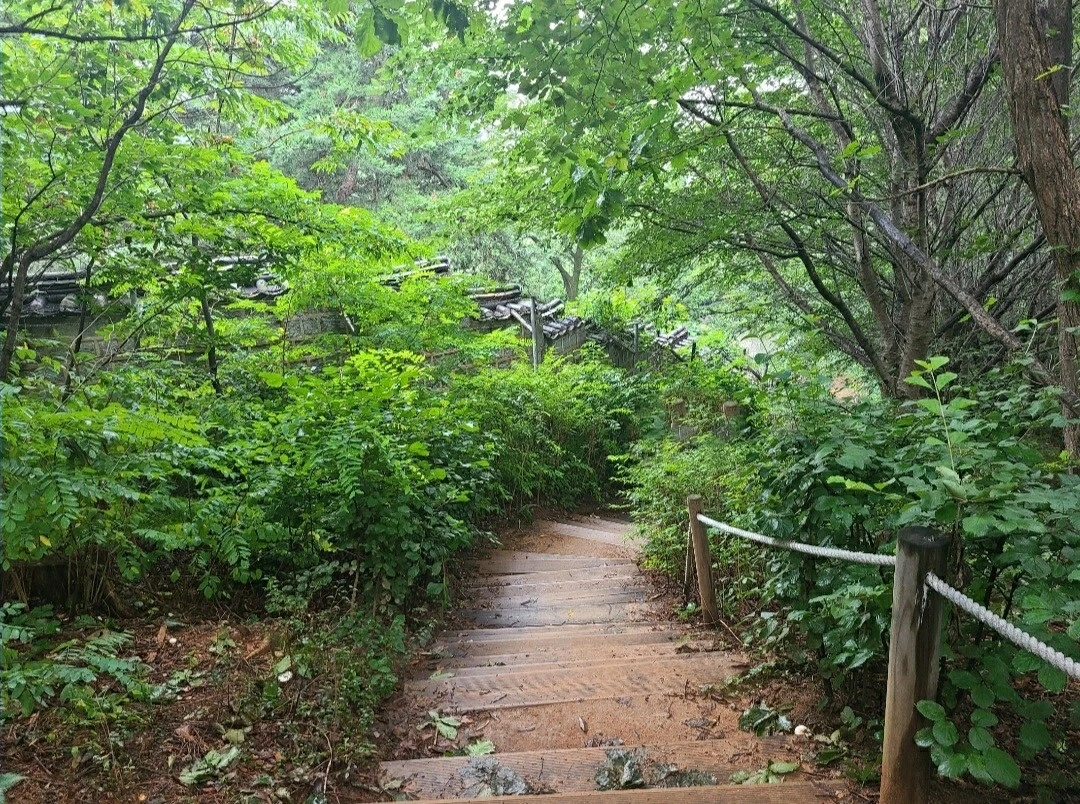 - 울창한 숲 속 오솔길과 곳곳에서 만나는 다양한 쉼터