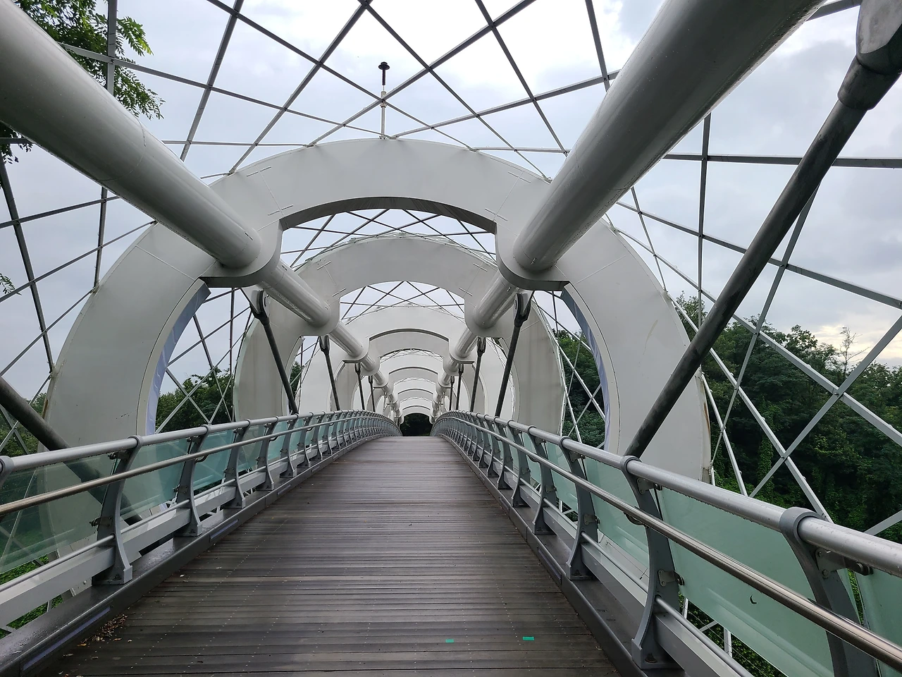 출발은 고속터미널 3번 출구에서 한다. 육교를 건너면 서울성모병원 뒤쪽으로 숲길 입구가 나온다. 여기부터 멋진 녹색띠를 따라 걷는 숲길이다. 서리풀공원 쉼터를 지나면 첫 다리인 누에다리가 나타난다. 조선시대 이 일대에 양잠기관인 ‘잠실도화’가 있어 누에를 특성화해 설치된 다리로 이 길의 명물이 되었다.