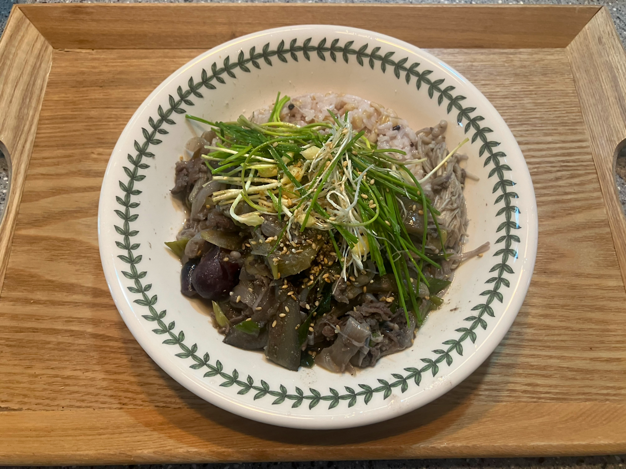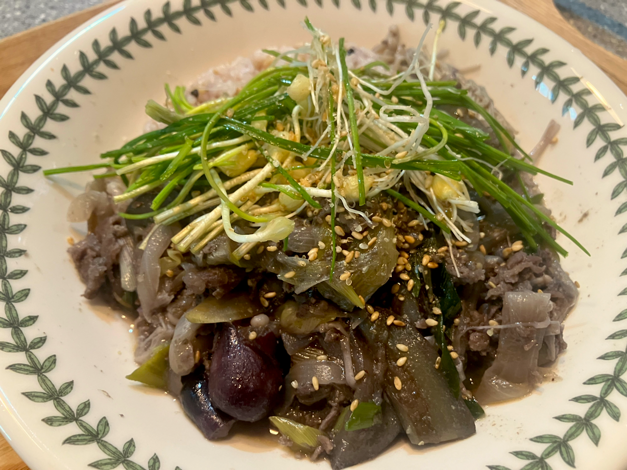 소불고기에다 양파랑 대파,