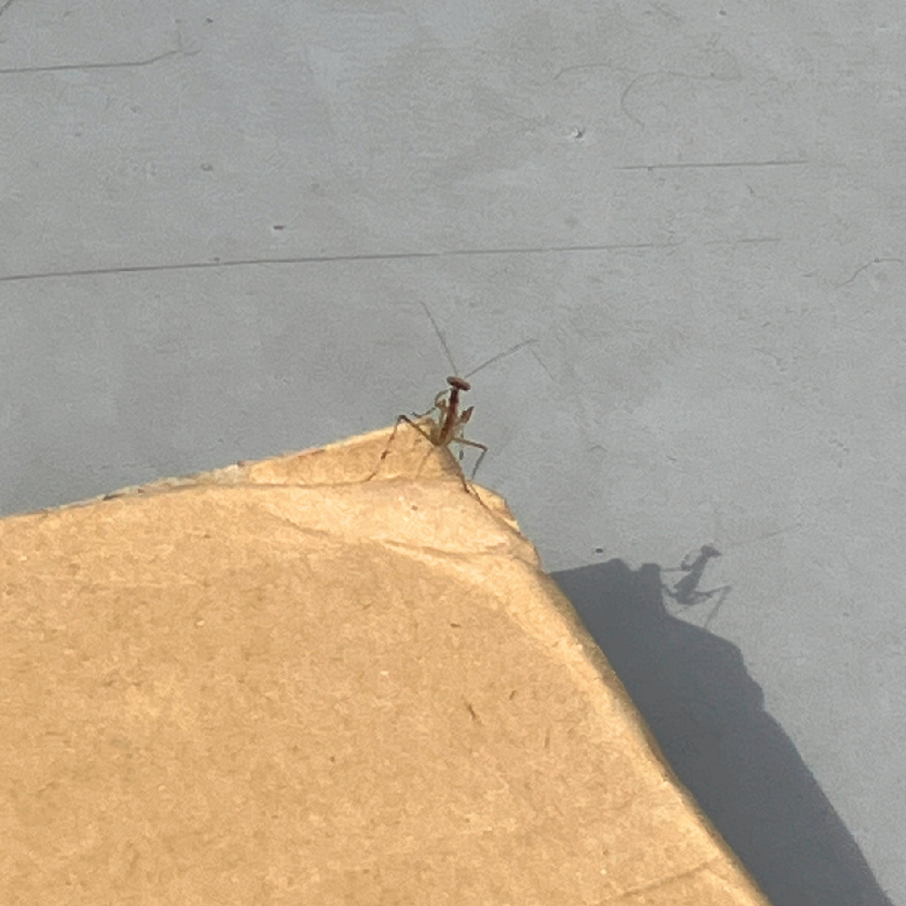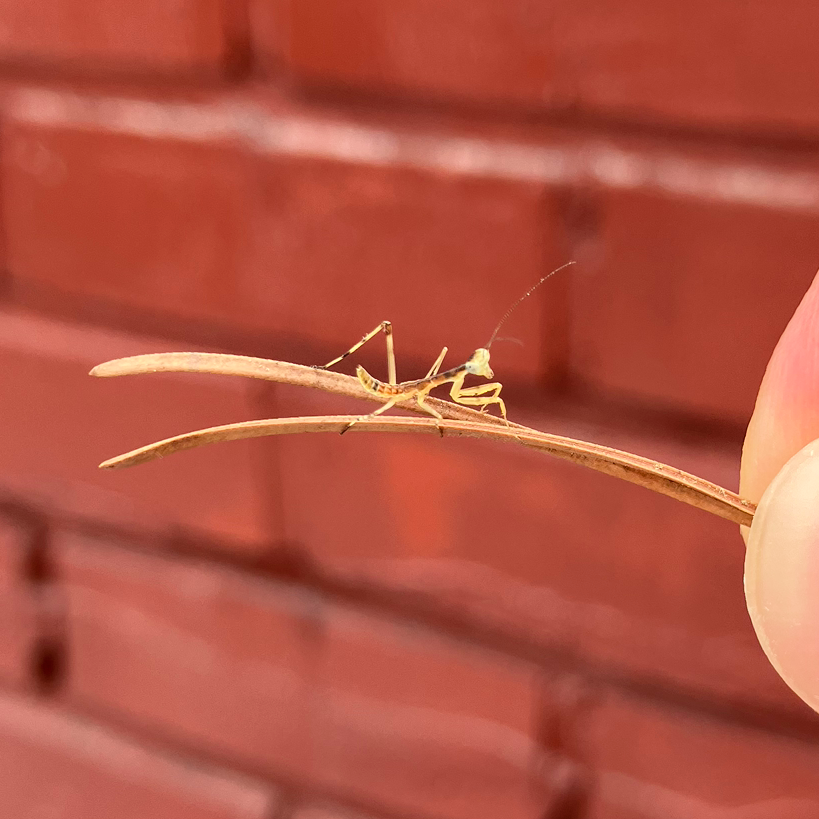 바퀴벌레와 사마귀는 그리 멀지 않은 친척이라더니... 아주아주 작은 사마귀였다. 사마귀는 한동안 광야의 박스를 누볐다. 그러나 마르고 평탄한 박스 위에 사마귀가 먹을 만한 것은 아무것도 없었다. 우리는 어쩌다 이런 불모지로 날려졌을까. 사마귀는 본능적으로 뭔가 잘못됐음을 직감했는지 박스를 벗어나 미끄러운 옥상 벽을 기어올랐다. 하지만 제 몸 높이만큼도 못 오르고 바닥으로 곤두박질치길 여러 번.