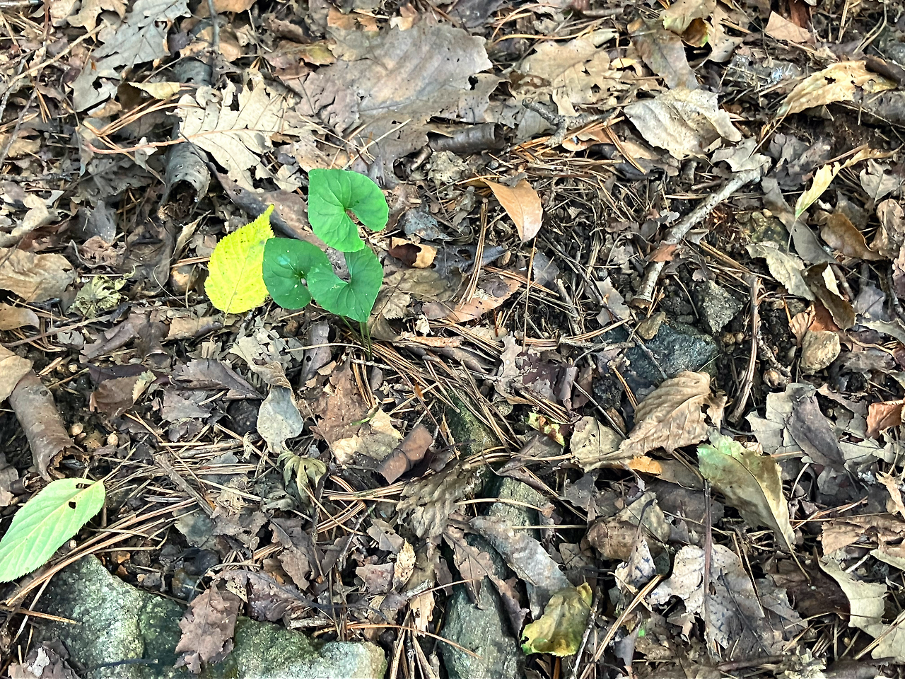 물리적 위치로서의 위: 작년에 떨어진 낙엽 위에, 올해의 낙엽이 포개집니다. 시간은 쌓이고, 계절은 중첩됩니다.