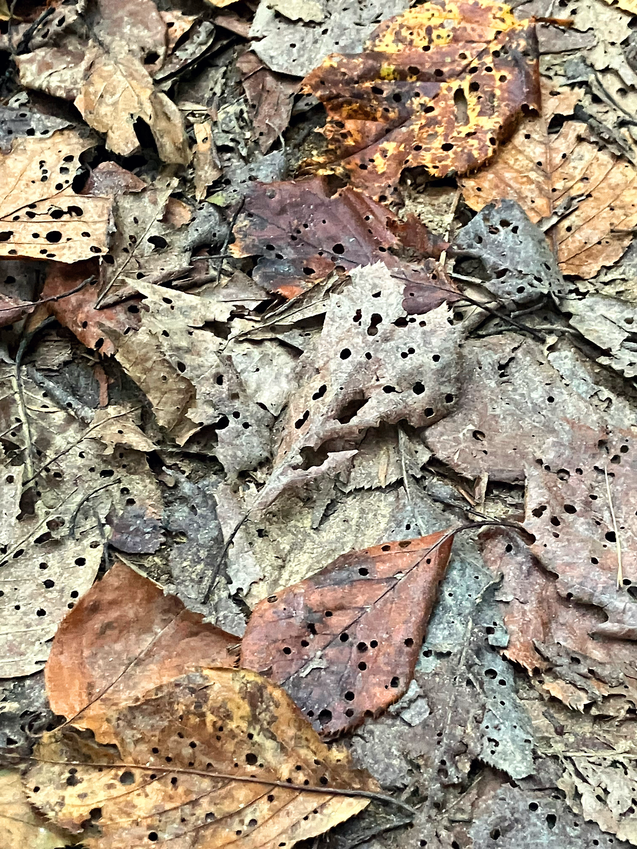 애 어른 할 것 없이 숭숭 뚫린 낙엽들.
