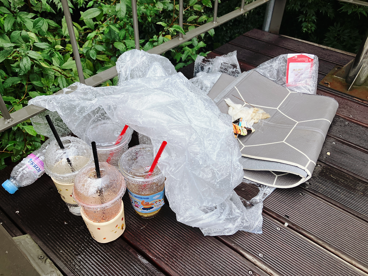 지나가는 어르신 하이커들은 방앗간 못 지나치고 호기심을 내비치며 그들에게 이것저것을 캐묻는다(휴대폰 카메라 조작법은 공통 질문). 대화를 엿들어 보니 불꽃축제를 촬영하러 온 모양이다. 그러고 보니 돗자리며 아이스박스며... 대체 언제부터 이러고 있던 걸까. 앞으로도 열두 시간을 내리 더 이러고 있어야 한다.