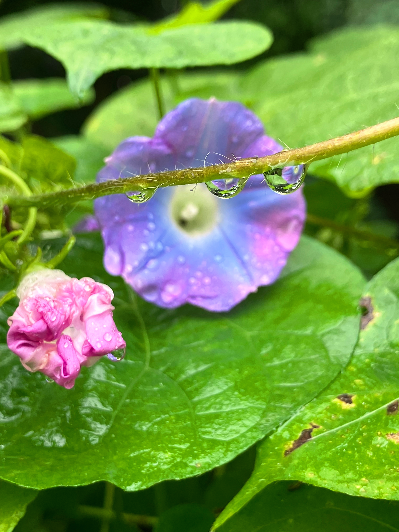 불꽃축제 다음날 아침, 알 수 없는 이끌림으로 평소 스쳐 지나던 나팔꽃 펜스 앞에 멈춰 섰습니다.