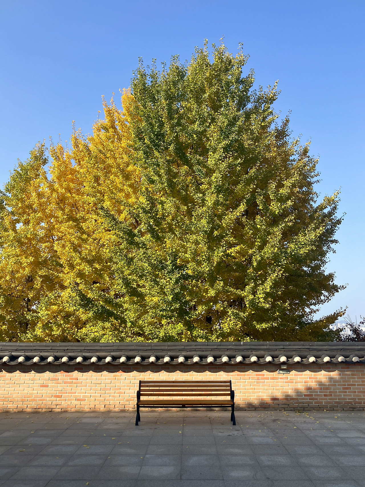 사계절이 모두 다 들어 있는 듯한 산사의 은행나무 앞에 서니 시간이라는 게 진실로 존재한다면 한 방향으로 굴러가는 게 아니라 시계추처럼 단진자 운동을 하는 게 아닌가 싶어집니다. 혹시 모르죠. 지금부터는 시간이 반대로 갈지도요!