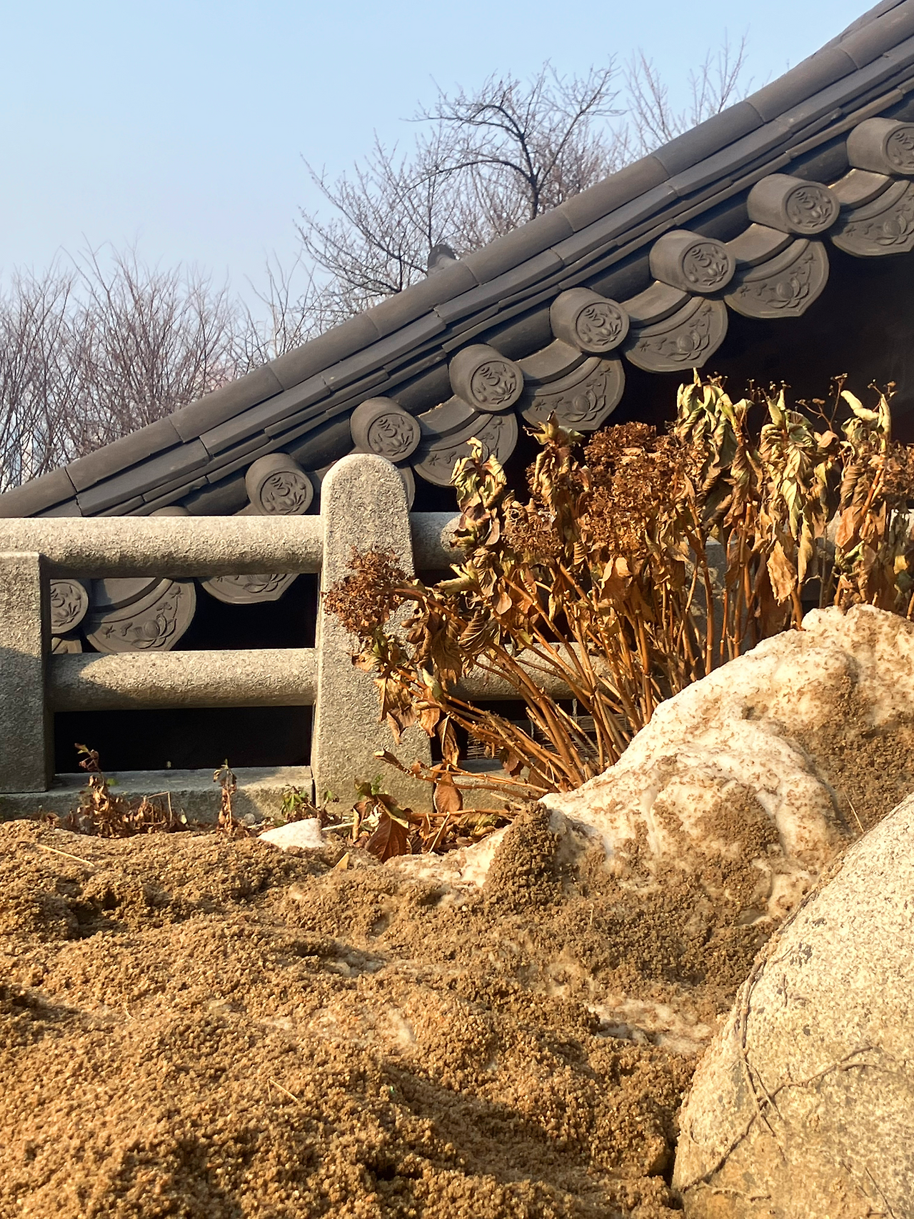 어제는 산사 중심도 아니고 변두리도 아닌 땅에 대충 뉘인 돌(주변에 벤치가 많이 있지만 자연석에 엉덩이를 끼워 맞추는 맛이 좋음)에 앉아 아빠다리 펼치고 줄기 같은 긴 팔로 턱을 괴어(얼굴을 꽃으로 바꾸어) 광합성하고 있는데 일차례 바람이 불더니 바다내음이 훅—정신을 차려보니 여긴 산중이고, 다만 내 앞에는 자갈과 모래. 바다냄새는 바닷물이 아닌 흙에서 왔나 보다(나의 기억은 전부 흙에 저장된 냄새였구나). 뒤이어 큼큼한 향냄새가 추억을 황급히 덮고... 아, 어디인들 어둠에 다한 폭죽놀이 그 바다로구나.