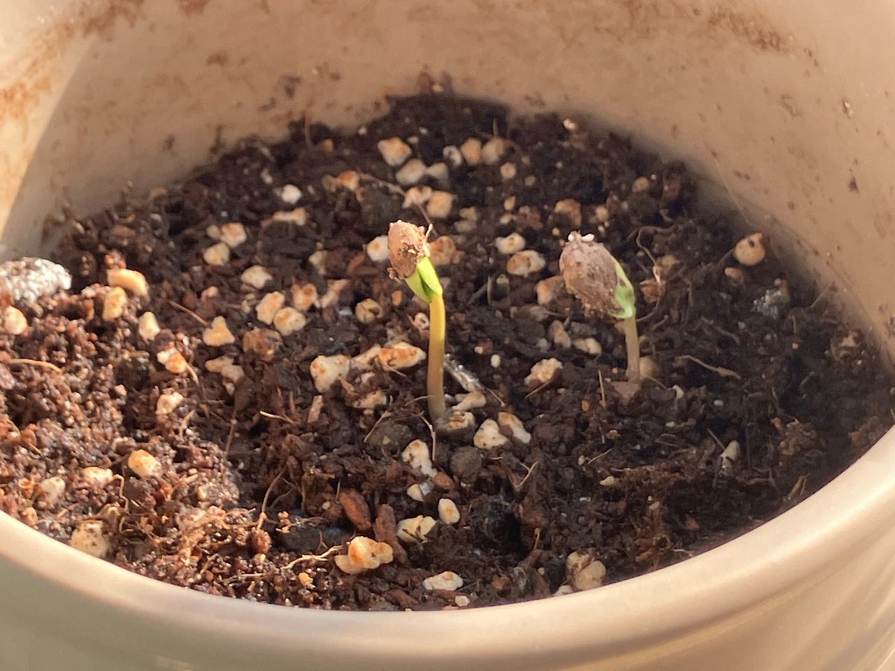 지난주에 둘째(이름 아직 못 받음)도 무사히 나왔다. 나오는 방식도 생김새도 첫째랑은 완전히 달랐는데 가만 보니 첫째 보다 줄기가 약해 보여서 조금 속상하다. 둘째가 나올 때 머리 위에 흙이 많이 무거워 보여서 도와준답시고 조금 걷어내 준 게 잘못이었는가 보다. 그나저나 첫째를 생각 없이 화분 한가운데에 심어버리는 바람에 금방 땅속에서 싸움 나게 생겼다. 떡잎이 펼쳐지고 나면 땅도 좀 더 높일 겸 자리를 다시 잡아주어야겠다. 셋째도 무사히 발아에 성공했다. 어디 숨었는지 빤한 지점에서 낮잠 잔다.
