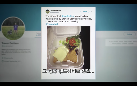 어디 가서 한 대 맞고 온 듯한 치즈샌드위치였죠. 어쩌다 이런 대참사가 벌어진 걸까요. 이 다큐멘터리는 하나의 사업이 사기로 전락하는 과정을 추적하고 있습니다.