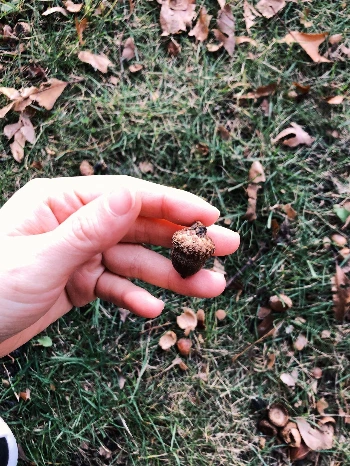 Ps. 얼마 전 공원에 갔다가 본 귀여운 도토리 사진도 같이 보내. 갈참 나무 아래에 도토리가 수두룩하게 깔려있는데 그중에서 모자가 온전히 달린 건 얘 하나뿐이었어.