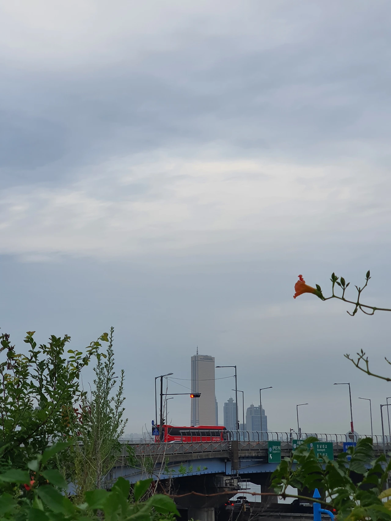아침 빗물의 손톱이나 아스팔트의 발톱에 주홍빛 능소화물 든 것만 얼핏 본 것 같고.