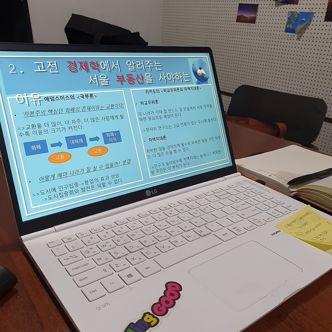 사실 오래된 친구와 그 친구를 처음 대면하는 자리를 이렇게 나눔 모임으로 시작하게 될 줄은 몰랐다. 그런데 또 예상외로 너무 재밌었다. 우린 홍대 근처의 스터디룸을 빌려 처음부터 끝까지 깔깔거리며 재밌게 각자 준비한 자료를 공유하면서 활발한 토론을 했다.