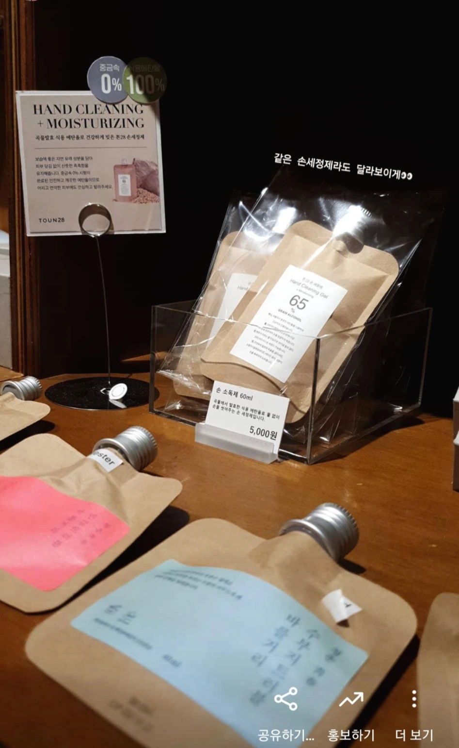 사람들에게 손 소독제는 어떤 카테고리일까? 의약외품일 수도 있지만 여느 사람들에게는 가방이나 사무실 책상 위에 늘 놓여있는 핸드크림 같은 상품군으로 분류될 수도 있다. 성수연방 띵굴마켓에서 발견한 톤24의 손소독제처럼 누구 앞에서 꺼내도 예쁜 디자인에, 손 소독을 했을 때 알코올 향이 강하게 풍기는 게 아니라 기분 좋은 향이 난다면 고객들은 일반 소독제 가격에 2배 이상이어도 기꺼이 구매한다.