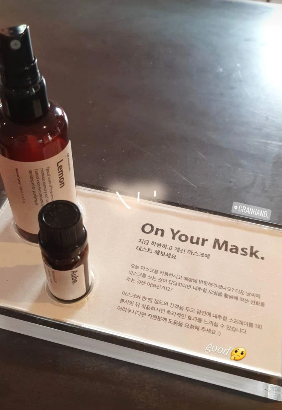 이때까지 마스크를 쓰고 있어서 향을 맡지 못한다고만 생각했지, 마스크에 향수를 분사해서 향을 맡을 수 있다는 사실을 깨닫지 못했던 것이다. 이 문구가 나오기 전까지 그랑 핸드의 직원들은 얼마나 많은 고민과 논의를 거쳤을까.