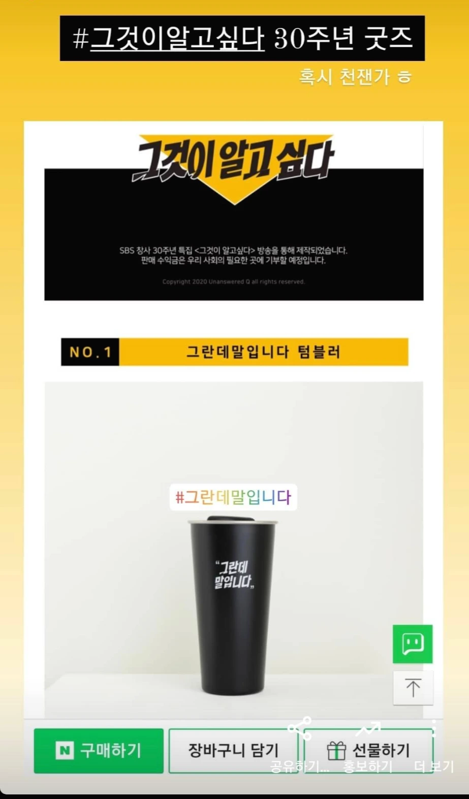 이런 점에서 텀블러와 마스킹 테이프라는 '뻔한 아이템'에 본인만의 아이덴티티를 담은 그것이 알고 싶다 굿즈가 화제가 되었고, 나도 상품 상세페이지까지 가서 구경했다. 참고로 구매하지는 않았다!