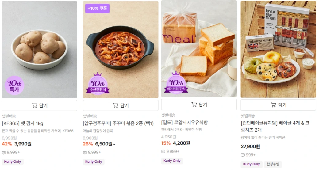 컬리 프로모션 페이지에 진열된 상품은 정신없이 탐색해야 하는 쿠팡보다 확실히 큐레이팅이 잘되어있어서 특히 주부들이나, 건강에 관심 많은 3040이 좋아할 만한 구성들이라고 생각합니다.