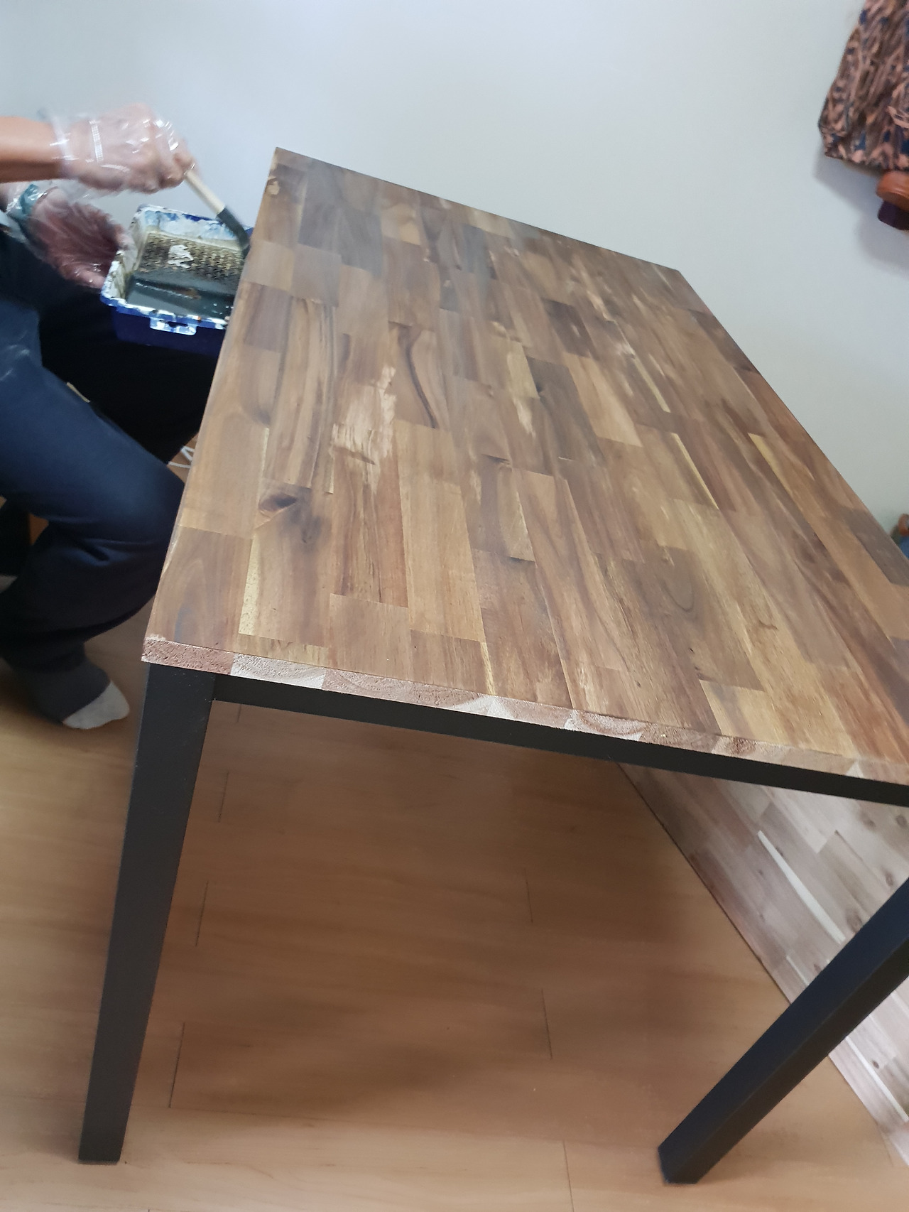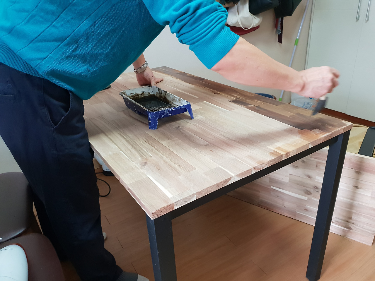 그리고 새로 구매해야 했던 테이블과 의자 등은 DIY 제품으로 주문했다. 가격과 퀄리티 모두 놓치고 싶지 않았기 때문이다. 용달차 아저씨가 조립을 해주셨고, 아빠와 나는 염료를 먹이고 그럴듯하게 꾸몄다.