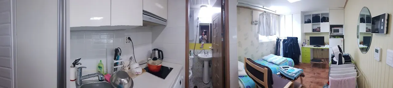 문을 열자 가장 아늑한 집이 나왔다. 지금까지 본 집중에 가장 집 같은 집이었다. 7평짜리 집이었고(하지만 관리비를 계산할 때는 공용 평수까지 합해진 11평을 곱한다..) 2002년에 지어져서 낡았지만 관리가 잘되어있다고 했다. 다만 내가 본 방은 3층짜리었는데 바로 앞에 주차장 건물이 있어서 해가 들어오지 않았다.