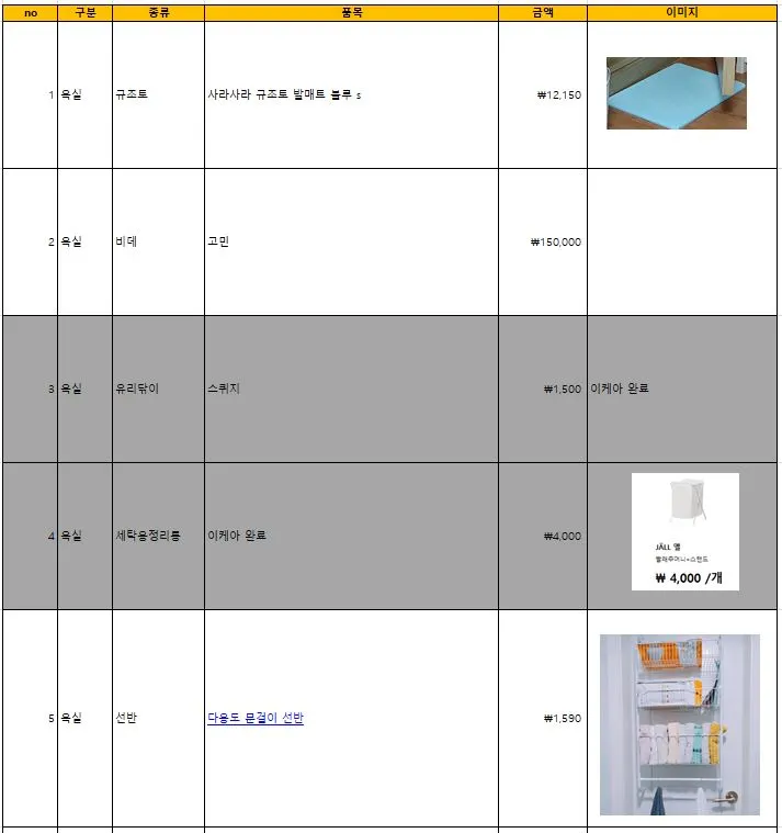 살림살이는 미리미리 준비해놓라는 엄마의 지휘 아래, 나는 열심히 살림살이 리스트를 작성하고 가성비 좋은 생활용품들을 묶어 엑셀표로 만들었다. 주요 쇼핑몰은 쿠팡과 이케아였다.
