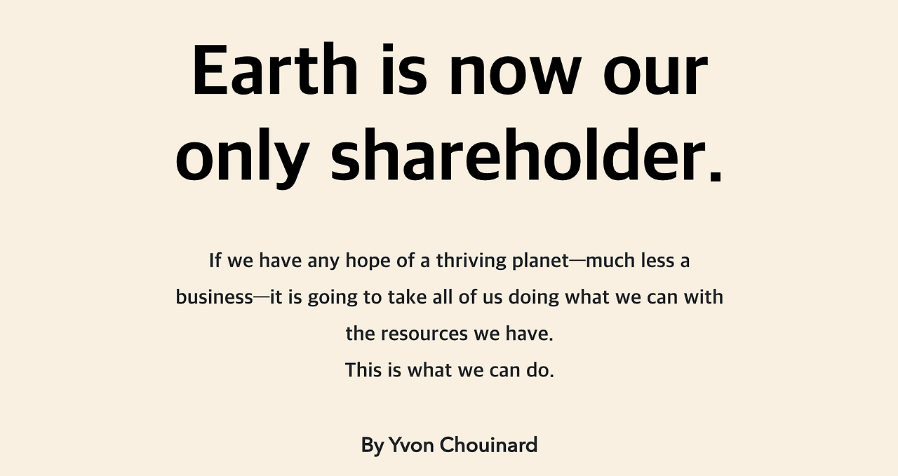 그런데 이본 쉬나드는 IPO도 M&A도 아닌 신탁과 비영리 단체에 기부라는 방법으로 Exit을 했다. Exit을 결정하면서 홈페이지에 쓴 파타고니아 창업자의 글을 보면 그렇게 Exit한 이유에 대해 알 수 있다.