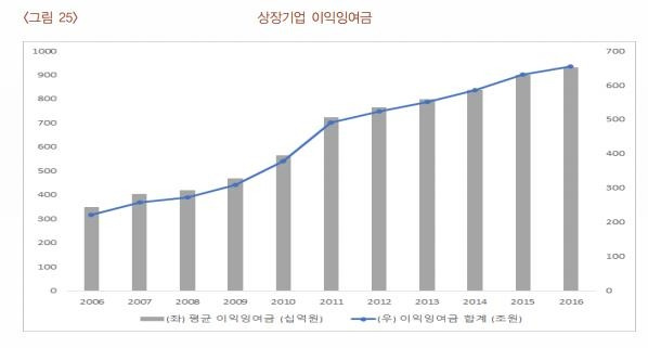 우리나라 경제에도 위와 같은 일이 벌어졌다. 가난한 대한민국은 대기업(장남)을 먼저 성공시키고자 성장 우선 주의를 채택했다. 대기업(장남)이 잘돼서 부유해지면, 중소기업도 잘되고 일하는 노동자들(딸들)도 부를 같이 누릴 수 있을 것이라고 생각했기 때문이다. 대기업의 세금을 깎아주고 어려운 일이 있으면 정부가 지원해 주는 방식을 오랫동안 고수했었다. 그렇게 열심히 지원해 준 덕분에 우리나라 대기업들이 세계적인 기업으로 성장할 수 있었고 소득 상위계층의 부는 폭발적으로 증가했는데, 아이러니하게도 전체 GDP 증가는 생각보다 더뎠고 중산층을 포함한 대부분의 사람들이 점점 살기 어려워졌다. 크게 성공한 대기업(장남)은 지가 잘나서 성공한 것이라며, 다른 경제 참여자들을 멀리하기 시작한다. 중소기업, 노동자 들과 과실을 함께 나누기보다 자기의 배만 채우려 했다. 객관적 지표가 이를 증명한다. 2008년부터 증시에 상장된 대기업들의 이익잉여금은 폭발적으로 증가했다.