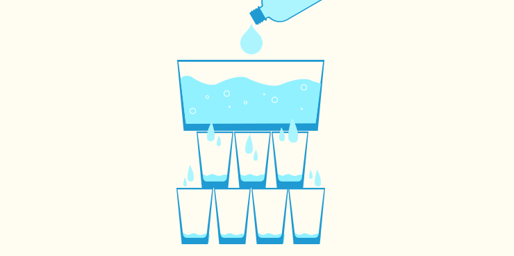 위의 예처럼 대기업과 고소득층이 먼저 성공해서 그 과실이 밑단까지 내려오길 기대하는 것을 경제학에서 낙수 효과(Trickle down effect)라고 한다. 컵을 피라미드 모양으로 쌓아놓은 다음 맨 위에 있는 컵(대기업)에 물을 부으면 맨 아래에 있는 컵까지 차오르는 형상을 떠올리면 쉽게 이해가 된다. 그런데 현실에 낙수효과를 적용해보니 피라미드 맨 위에 있던 컵이 알고 보니 컵이 아닌 세숫대야였던 것이다.