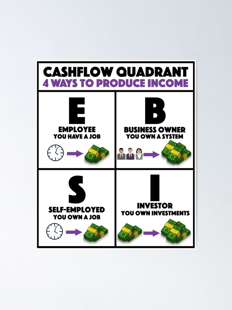 반면, 사업가(B)와 투자가(I)는 나의 노동력을 (거의) 투입하지 않아도 된다. 내가 없더라도 월급쟁이(E)의 노동력과 돈이 스스로 알아서 돈을 벌어다 준다. 그렇기 때문에 확장성이 좋다. 내가 투잡을 하지 않더라도 나의 직원들 혹은 돈이 스스로 알아서 일을 한다.