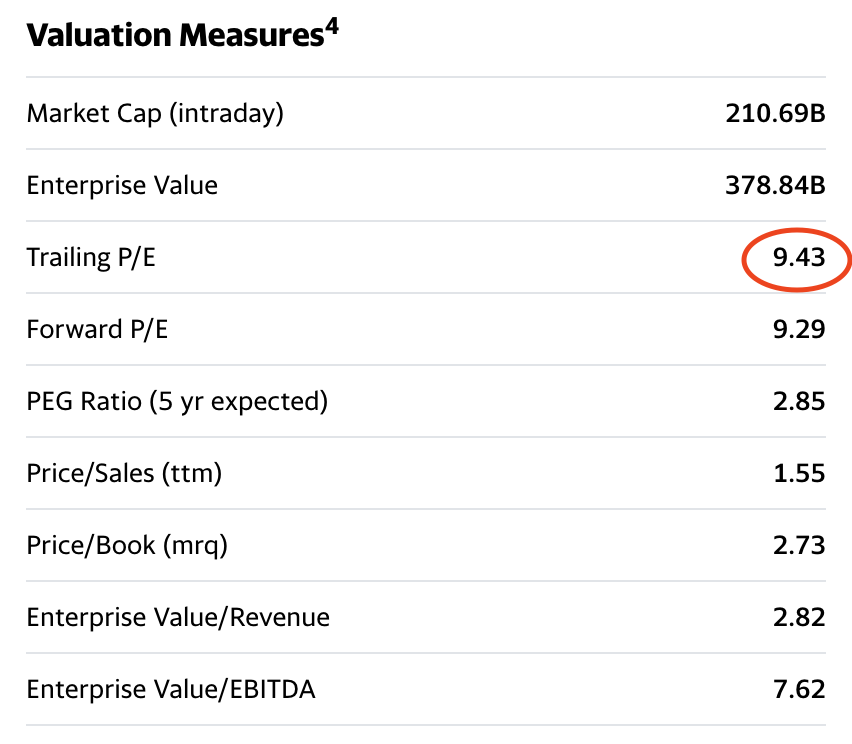 반면 버라이존의 PER는 9.43이지만 순이익이 3.3%씩 성장한다고 전망되기에, PEG은 2.85 가 나온다. (9.43/3.3) 즉, 미래 성장 가치를 반영한 PEG 기준으로 보았을 때 테슬라 (2.67)가 버라이존(2.85) 보다 저평가되었다.