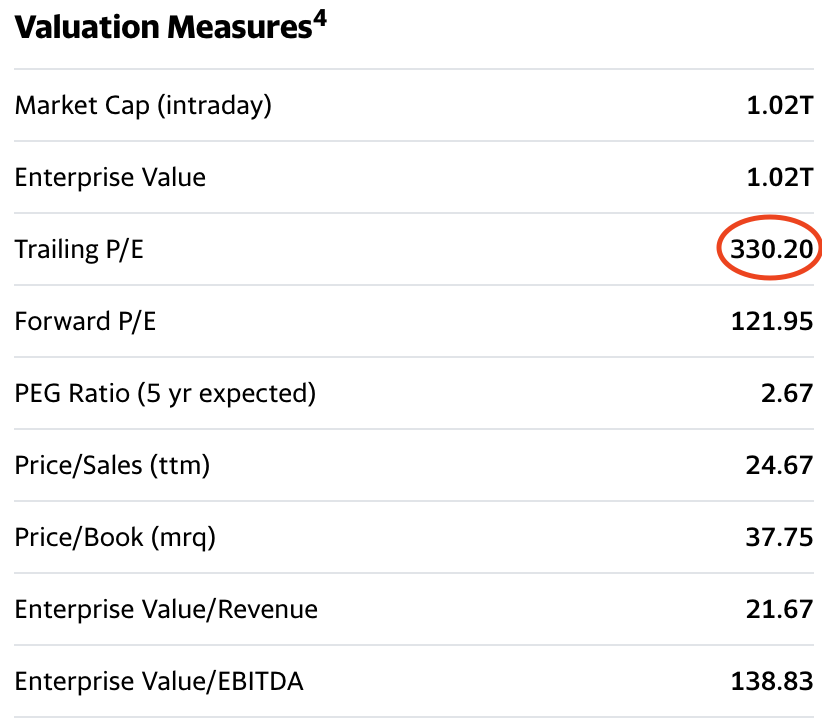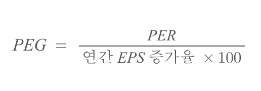 PER에다가 앞으로 5년간 순이익이 매년 몇 % 씩 성장할 것인지를 나누면 PEG이 나온다. 테슬라의 PER가 330이지만, 앞으로 5년간 매년 순이익이 123.7%씩 성장한다고 전망되기에, PEG은 2.67 이 나온다. (330/123.7)
