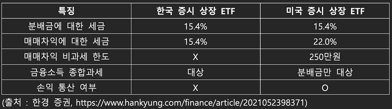 똑같이 S&P를 추종하는 ETF 일지라도 국내 상장된 ETF와 미국에 상장된 ETF에 적용되는 세금이 다르기 때문에 절세 방법을 잘 알고 있어야 합니다.