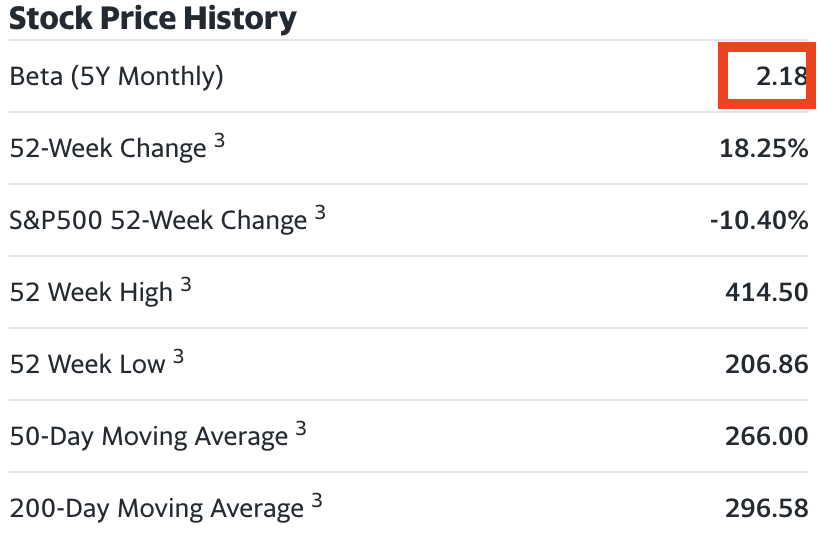 이처럼 지수(나스닥, S&P500)가 변동할 때 얼마나 민감하게 주가가 반응하는지 보여주는 지표가 있는데, 이를 베타 계수 혹은 베타 값이라고 합니다. 베타 계수가 크면 클수록 주가가 민감하다는 뜻이고 "0"에 가까울수록 둔감하다는 뜻입니다.