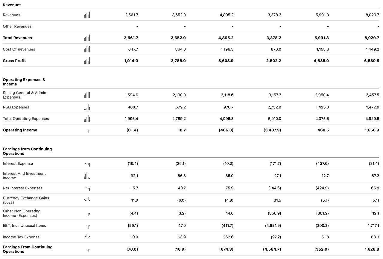 2021년에 처음으로 영업이익(Operating Income) 흑자가 났고, 2022년에 처음으로 당기순이익(Net Income) 흑자가 날 것으로 전망됩니다. 참고로 어닝콜 날짜는 2월 21일입니다.