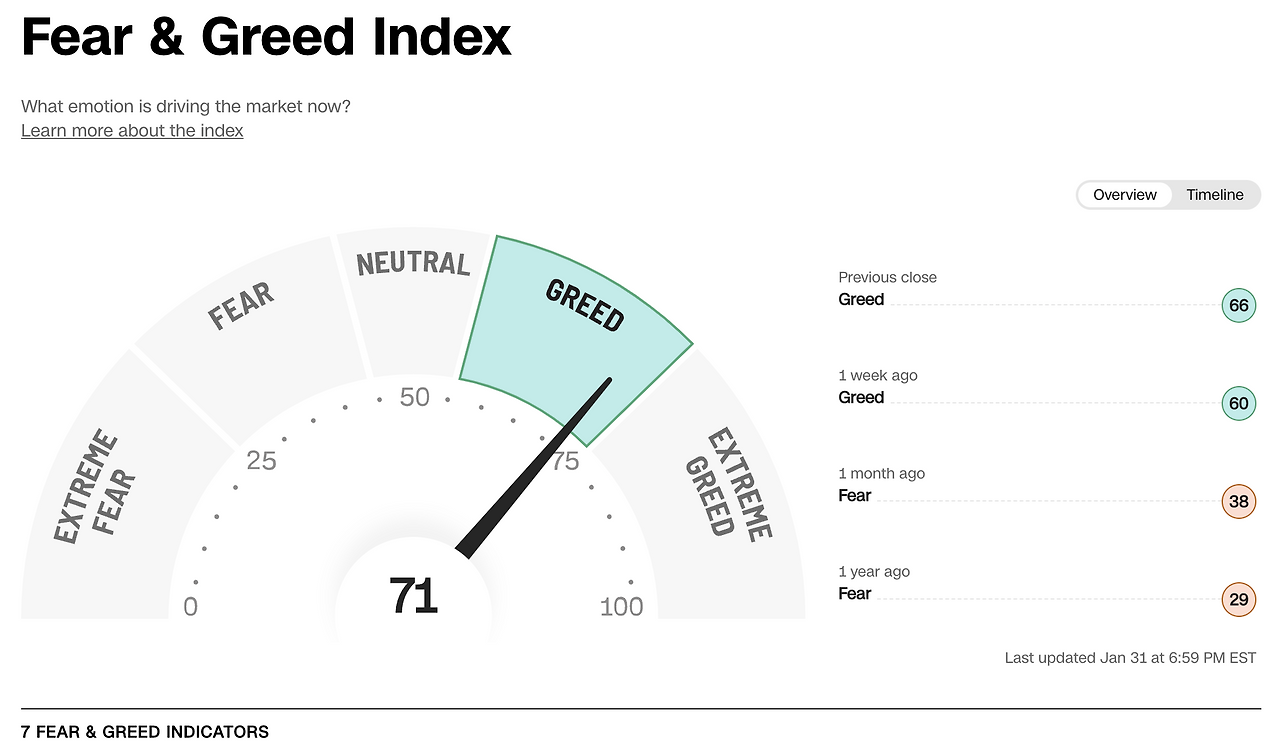 현재 시장은 Greed, 즉, 탐욕으로 가득 찬 상태입니다. 언제 거품이 빠질지 모르는 불안 불안한 상태입니다.