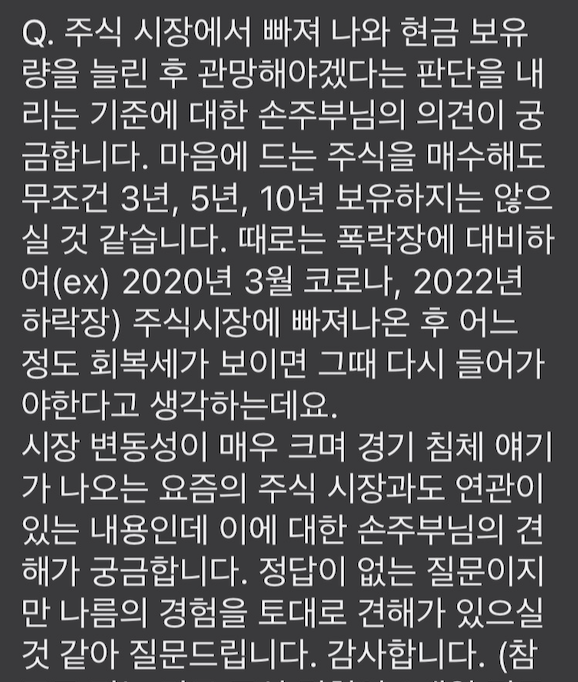 아무튼, 현시점에서 제가 리스크를 줄이는 방법은 투자한 기업에 대해서 끊임없이 공부하고, 질문하고, 기업이 잘하고 있는지 모니터링하는 것뿐입니다. 아울러, 제 자신의 역량을 키워서, 어디서나 필요한 사람이 되고자 노력하고 있지요.