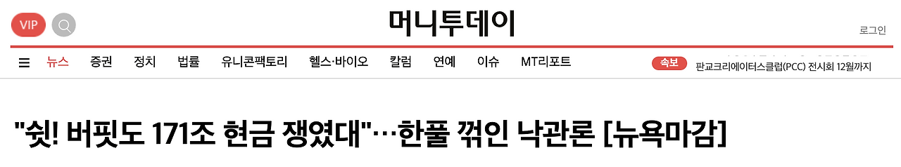 워런 버핏이 하반기 경기 침체 (Recession)를 전망하고, 애플 주식을 팔아서 현금 보유량을 171조 까지 늘렸다는 기사입니다.