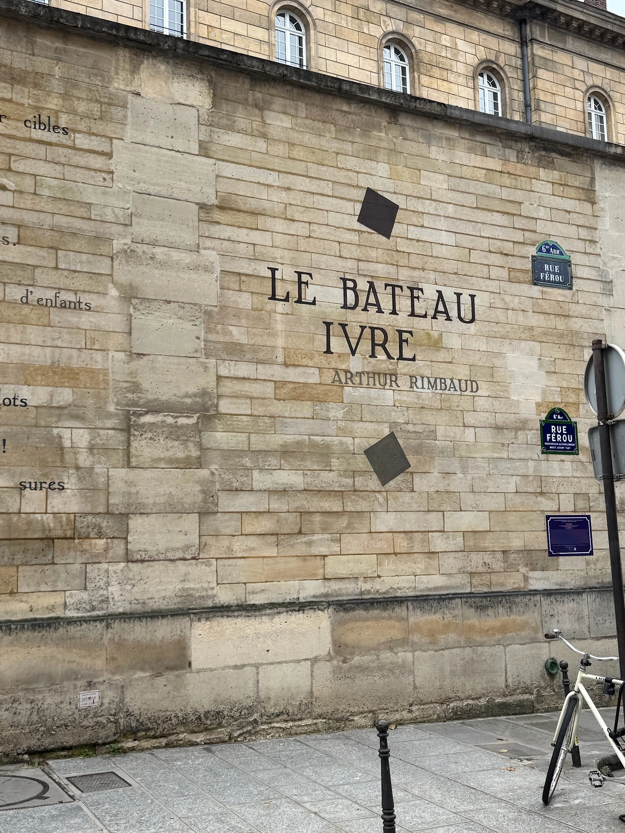 동생이 와인잔을 깨뜨린 건, 사실 내 탓일지도 모른다. 전에 변명으로 언급했던, 경험하지 않은 것은 와닿지 않아 일정이 닥쳐야 슬금슬금 움직이는 나는, 파리 숙소에 있다가 문득 "랭보 어디 사람이지?"하고 묻는다. 찾아보니 역시 프랑스 사람. 그러다 파리에 랭보의 시 <취한 배>가 적힌 벽화가 있다는 사실을 알게 된다. "어디에 있지? 아 우리가 어제 간 뤽상부르 공원 근처에 있네.. 하하." 그런데 사진을 보니까 꼭 가고 싶어 져서 양심도 없이 가자고 조른다. 가고 싶은 곳을 미리미리 확인하지 않고, 심지어 근처를 다녀온 후에야 말하자 동생은 당연히 화가 났다. 근데 그 와중에 나도 이런저런 이유를 대며 답했지만(정확히 기억은 나지 않는다), 사실 무조건 내 잘못이긴 했다. 그렇게 약간 감정이 격양된 상태에서 밥은 먹어야 하니 설거지를 하다가 그만, 와인잔이 깨졌다. 평소보다 잔을 좀 더 세게 털지 않았을까? 아무튼.