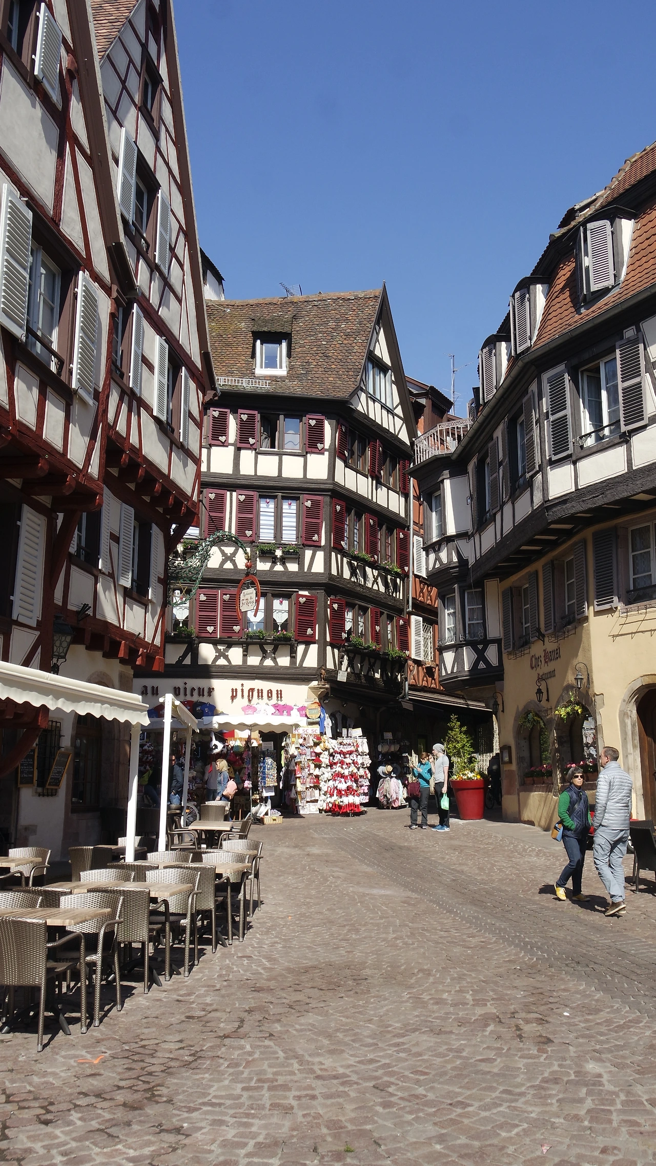 걷다 보니, 또 새로운 - 그리고 기억에 남을 한 장면이 펼쳐졌다. 흰 얼굴에 검은색과 빨간색으로 곱게 단장한 두 채의 건물이었다. 백설공주를 연상시키는 건물의 사이를 지나가면, 또다시 상점가. 그러고 보면, 콜마르의 구시가지는 정말 대부분이 식당 아니면 상점으로 이루어져 있다. 사실 당연한 일이겠지만. 사실 따지고 보면 이 구시가지는 우리나라 민속촌 비스무리한 공간이니 말이다.