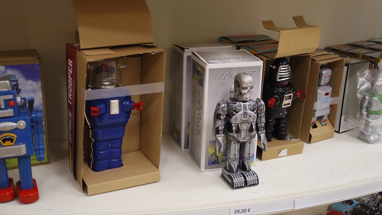 콜마르 만화박물관에 도착했다. 입구 사진은 찍어두지 못한 게 아쉽다. 들어가 보니, 의외로 일본의 고전 로봇 장난감들이 제일 먼저 눈에 띄었다. 92년생인 나에게는 생소한 로봇들이 한가득이라, 일본 로봇 만화의 전통이 꽤나 길기는 하구나, 싶었다. 이런 오래된 장난감들을 보고 있노라면, <현태준, 이우일의 도쿄 여행기>에서 봤던 에피소드가 생각난다. 딸의 선물을 사러 장난감 가게에 들른 이우일 씨가 어렸을 적 무지 갖고 싶었던 추억의 로봇을 보고는 살까, 말까 고민하다가 사 와서는 집에 돌아와서 만들어보니 그 허접한 퀄리티에 실망하고 말았다는 이야기. 어렸을 때는 그렇게 멋져 보였는데, 그냥 만나지 않는 편이 더 좋았을 듯했다는 표현이 꽤 인상적이었다. 이 로봇들도 누군가에겐 그런 존재일지도.