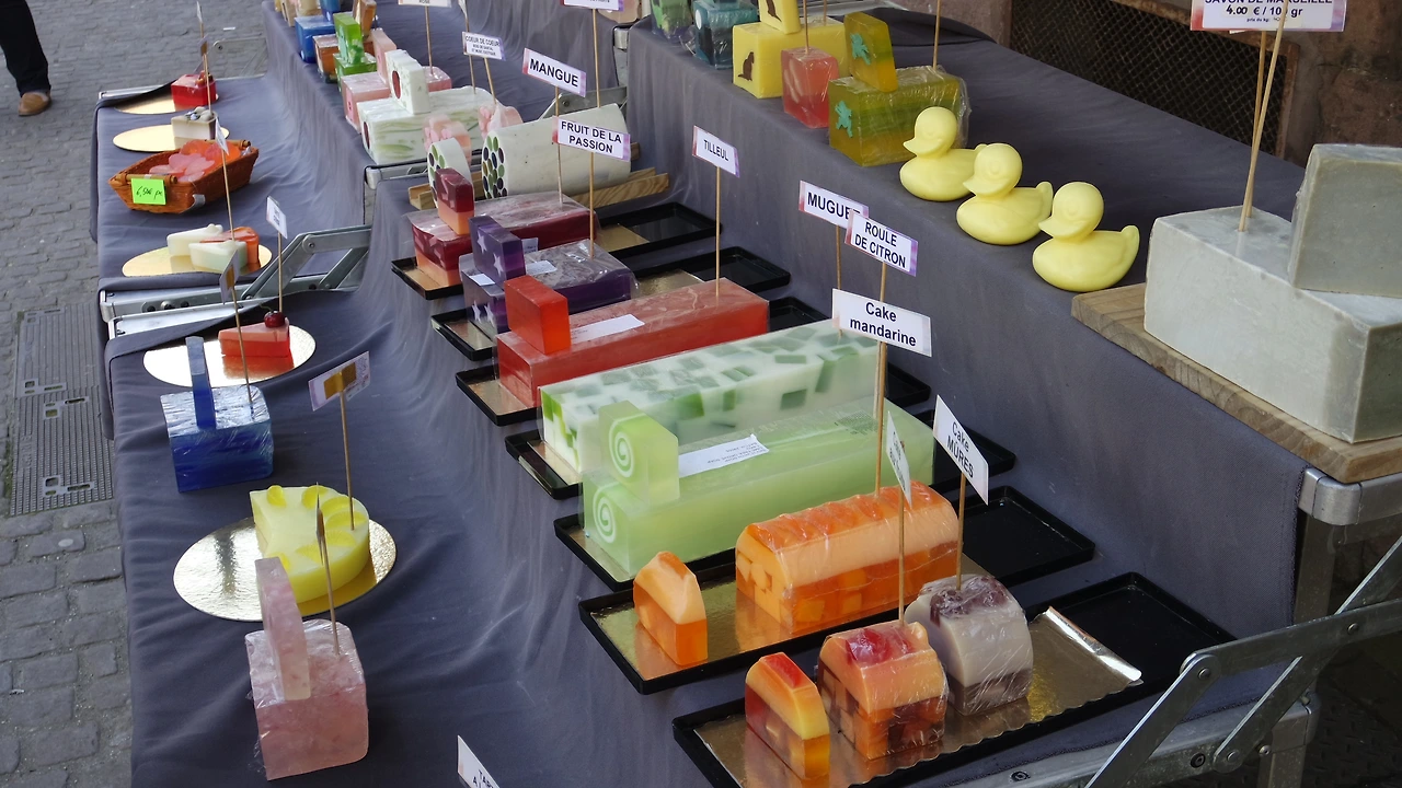 굉장히 예쁘게 만든 푸딩처럼 생긴 비누 같은 것 말이다. 특히 뒷줄에 보이는 오리모양 비누가 워낙 귀엽게 생긴 탓에 하나 사 오고 싶었는데, 여행 내내 캐리어 안에서 구르다 보면 모가지가 뚝 하고 꺾일 것 같아 그냥 사진에만 담아왔다. 보관하기 어려울 것 같아서 못 사 온 물건이 너무 많다. 언제가 될지는 모르겠다만, 다시 갈 기회가 생긴다면 숫제 빈 캐리어 하나를 기념품 저장용으로 가져가야 할라나보다.