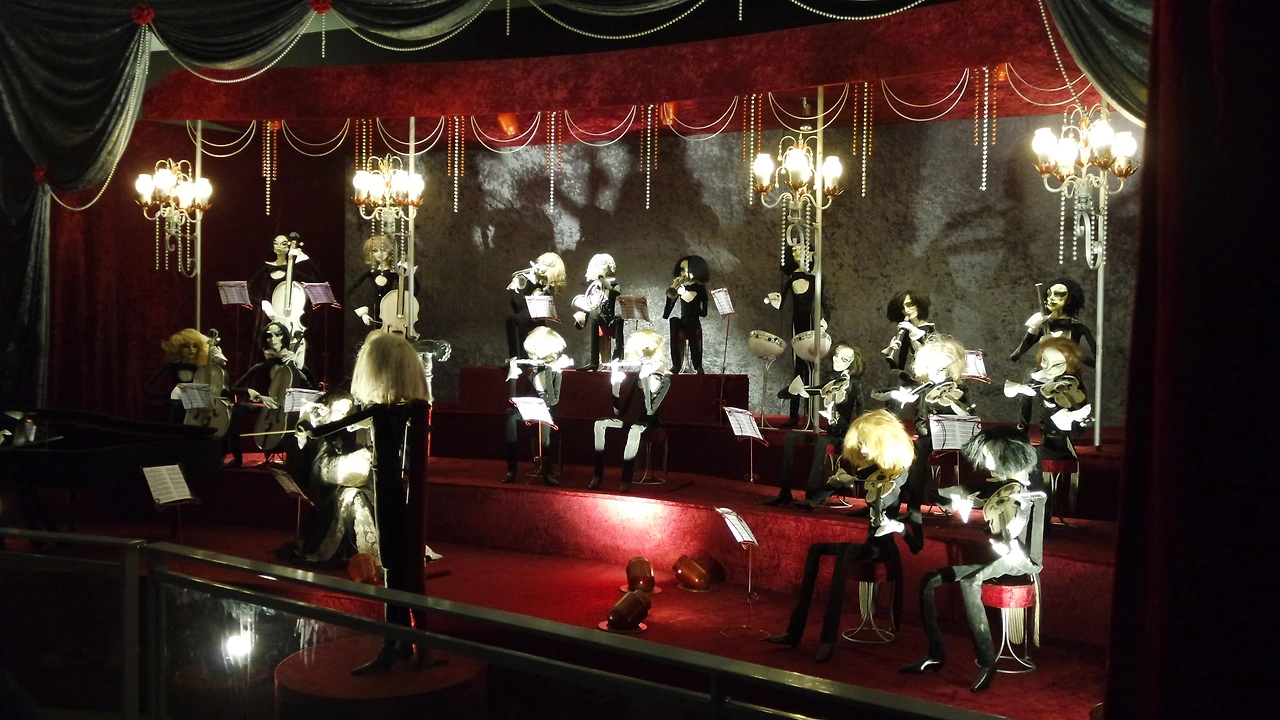 그렇게 돌아다니고 있으려니, 직원이 와서 인형 오케스트라가 열린다고 가보란다. 어차피 볼 건 거의 다 본 후였기에, 미련 없이 가보니 꽤나 큰 인형들의 오케스트라가 있었다. 물론 저 인형들이 바이올린을 켜거나 하는 건 아니고, 그냥 녹음으로 나오는 음악에 맞춰서 연주하는 '척' 몸을 흔들거나 활을 켜는 것이다. 그보다 인상적이었던 건 인형들이 쓸데없이 무섭게 생겼다는 것 정도. 당장이라도 '쏘우'에 나와도 전혀 위화감이 없을 것처럼 생겼다.